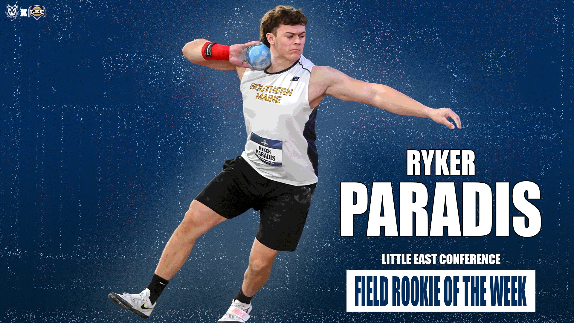 HOOKSETT, N.H. – Freshman Ryker Paradis (Lewiston, Maine) beat his own program record in the shot put with a throw of 17.25m to place first in the elite section of the event on Saturday at the Southern New Hampshire University Ed Daniels Invitational. He also placed second in the discus with a personal-best throw of 48.25m. He now ranks second in program history behind record holder William Carrolton.